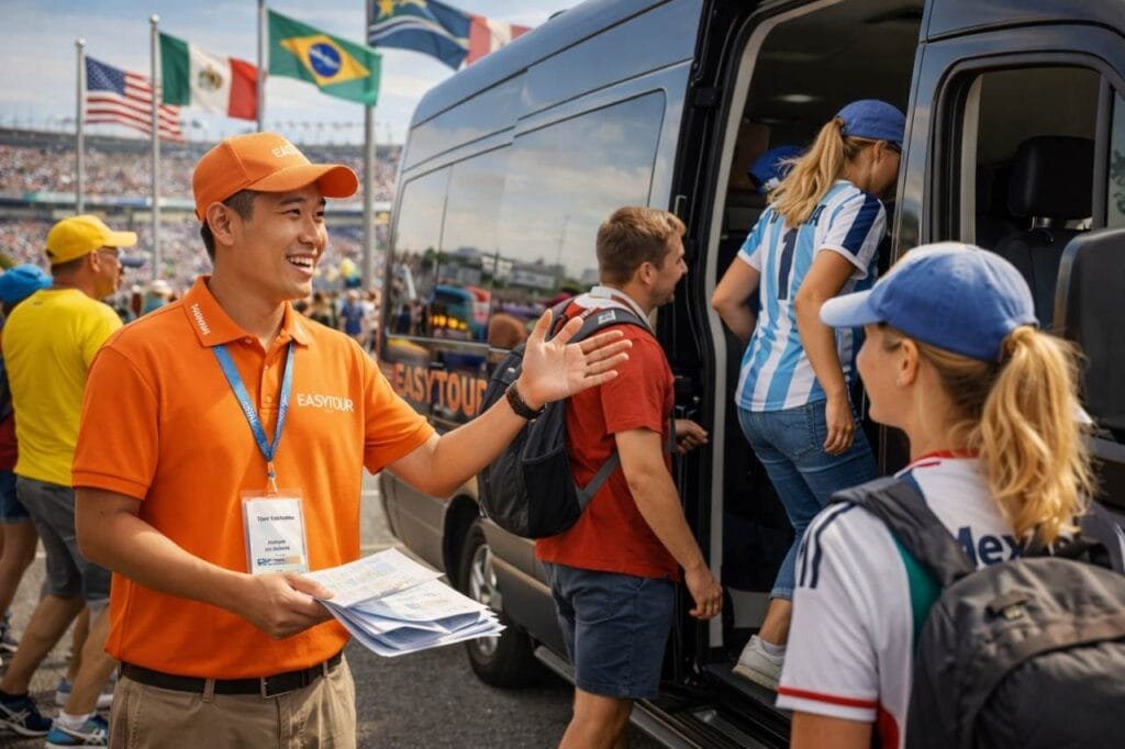 交通渋滞、高額な駐車場、公共交通機関の混雑は、ワールドカップの興奮を台無しにしてしまう可能性があります。そんな時こそ、Easytourがお役に立ちます。アメリカ、カナダ、メキシコの16の開催都市すべてで、プロフェッショナルな送迎サービスとツアーサービスを提供しています。空港送迎とスタジアム送迎だけのシンプルなツアーから、複数都市を巡る包括的なパッケージまで、Easytourの車両はお客様のニーズに合わせて様々な車種を取り揃えています。.