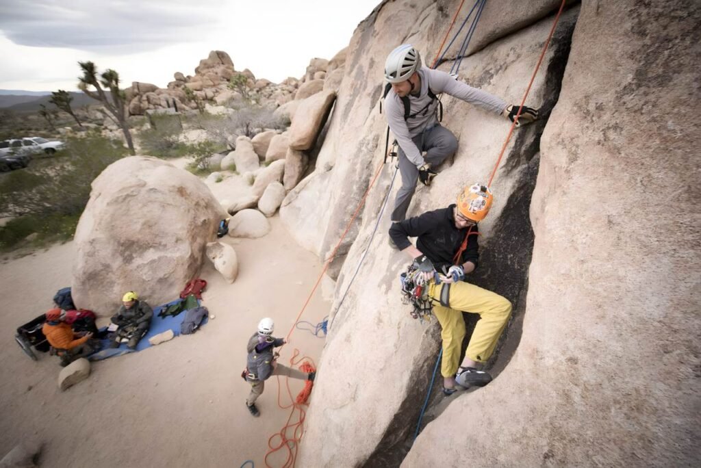 🧗 Rock Climbing & Belaying Lessons: Begin with top-roping techniques and belaying basics under the guidance of expert instructors. Soon you’ll be climbing real granite walls surrounded by breathtaking desert views.